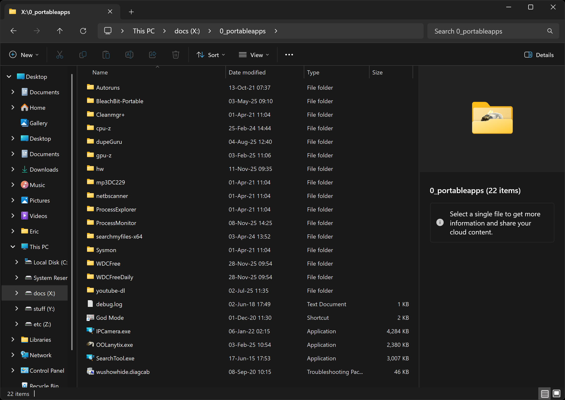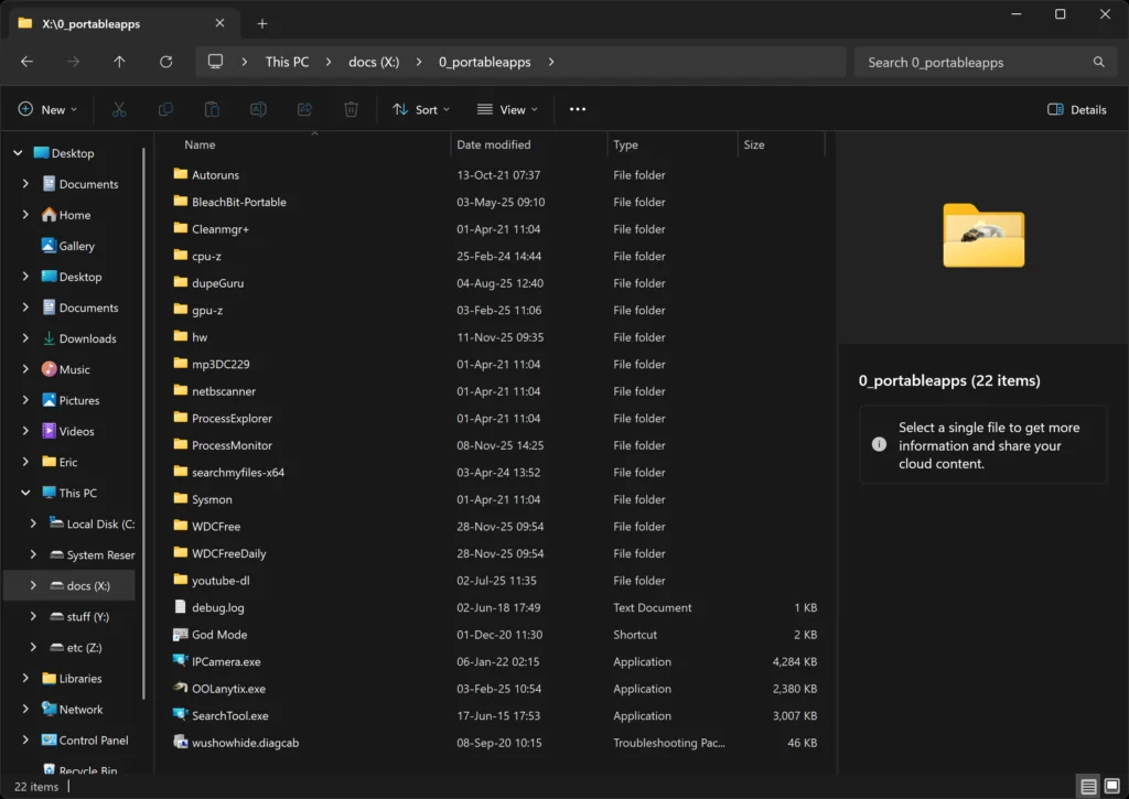 – Create a folder for your portable apps. I keep mine on a separate drive from Windows. In this case, X:\0_portableapps.