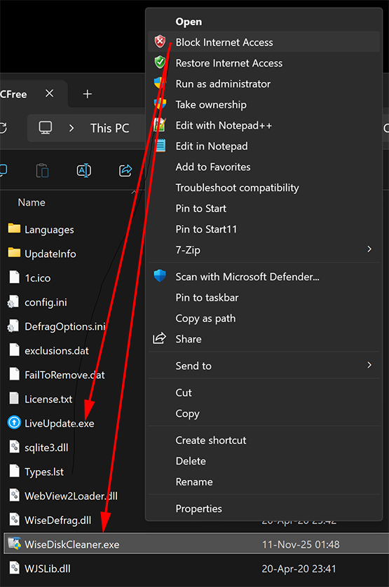 – Extra step. I’m, uh …”funny” about allowing my apps access to the internet. I block access more often than not. Back in 2018 I wrote, “Blocking A Programs Internet Access Via The Windows Firewall“. You can still do this manually but these days I just use OneClickFirewall by Winaero. Please note, you need to do this for every application (.exe) in a products folder because sometimes programs use a separate program to, let’s say, update (LiveUpdate.exe) and some programs are sneaky, sneaky.