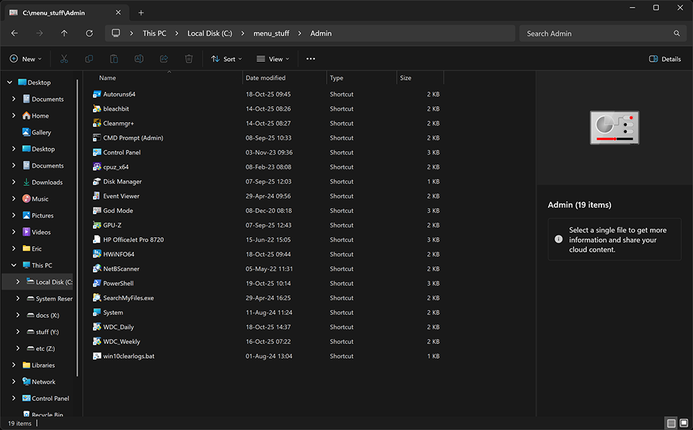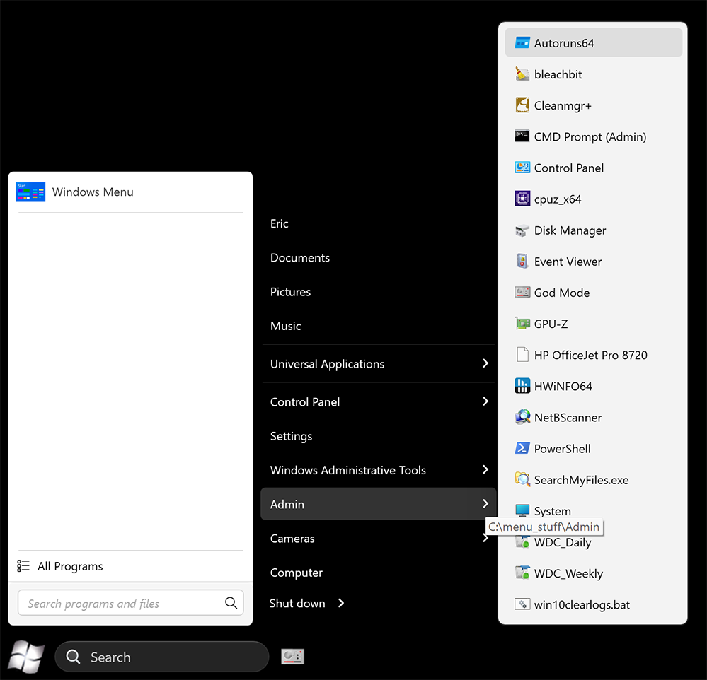 – Create a folder for your new portable apps menu. In my case, C:\menu_stuff\Admin. We are going to place ethe shortcuts we create here.