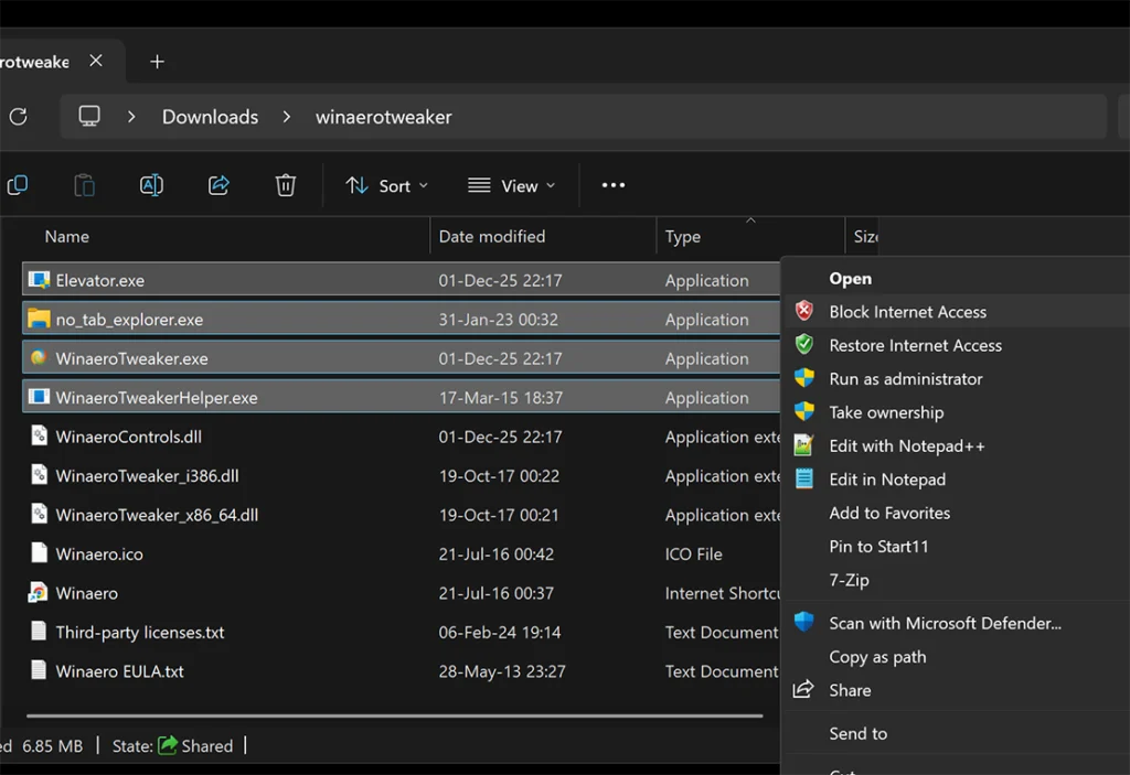 – Do not allow it to access the internet. I just use OneClickFirewall by Winaero.