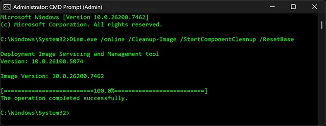 Dism.exe /online /Cleanup-Image /StartComponentCleanup /ResetBase