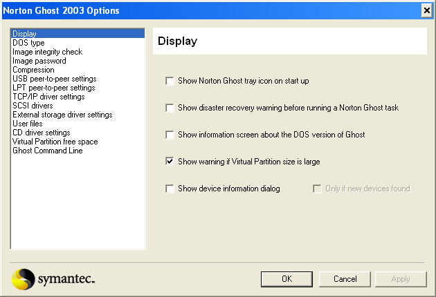 Back at the main screen click Options again and choose Norton Ghost. Make your screen look like mine. Click OK and once back at the main screen close it out.