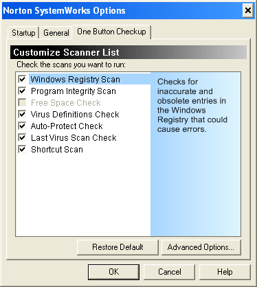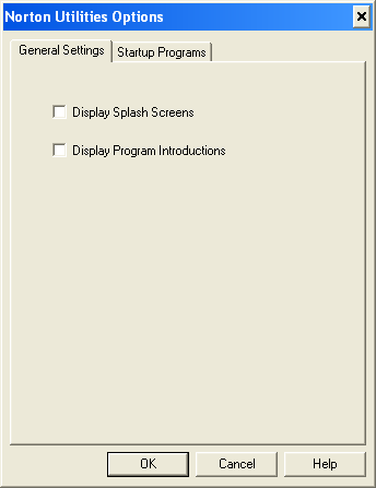Back at the main screen. click the Options button again and choose Norton Utilities. Click through the tabs making each screen look like mine.